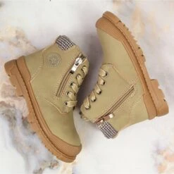 Mazurek Bottines Velcro 1302 Spring Flower Satin Doré Beige Rose