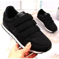 Chaussures De Sport Pour Enfants American Club 154/23 Noires Avec Velcro Le Noir
