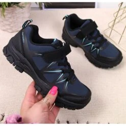 Chaussures De Trekking Pour Enfants Imperméables Avec Velcro Bleu Marine American Club Le Noir
