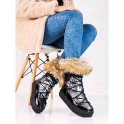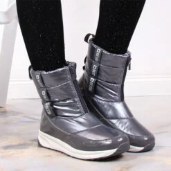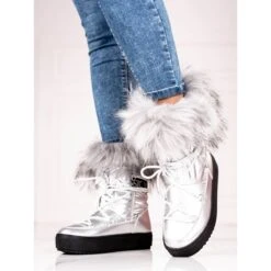 Bottes De Neige Argentées Pour Femmes Avec Fourrure Shelovet
