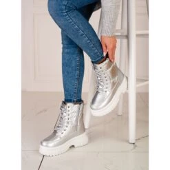 Bottes De Neige Argentées Pour Femmes Sur La Plateforme Shelovet