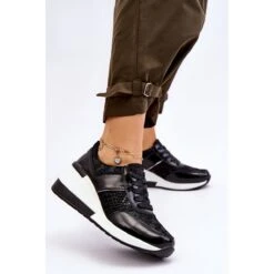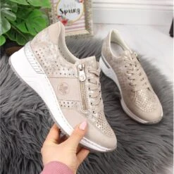S.Barski Chaussures De Sport En Cuir Pour Femmes Sur Un Coin Beige Et Blanc Larson Blanche D’or