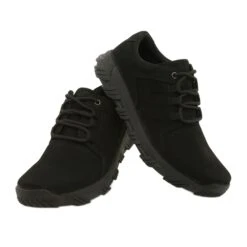 Les chaussures sont en cuir naturel noir et d’une couleur très pratique. L’intérieur est fini avec un tissu agréable au toucher, ce qui augmente le confort d’utilisation. La semelle intérieure, comme la doublure, est faite d’un matériau qui aère parfaitement l’intérieur de la chaussure. Le dessous de la chaussure est en matière synthétique.