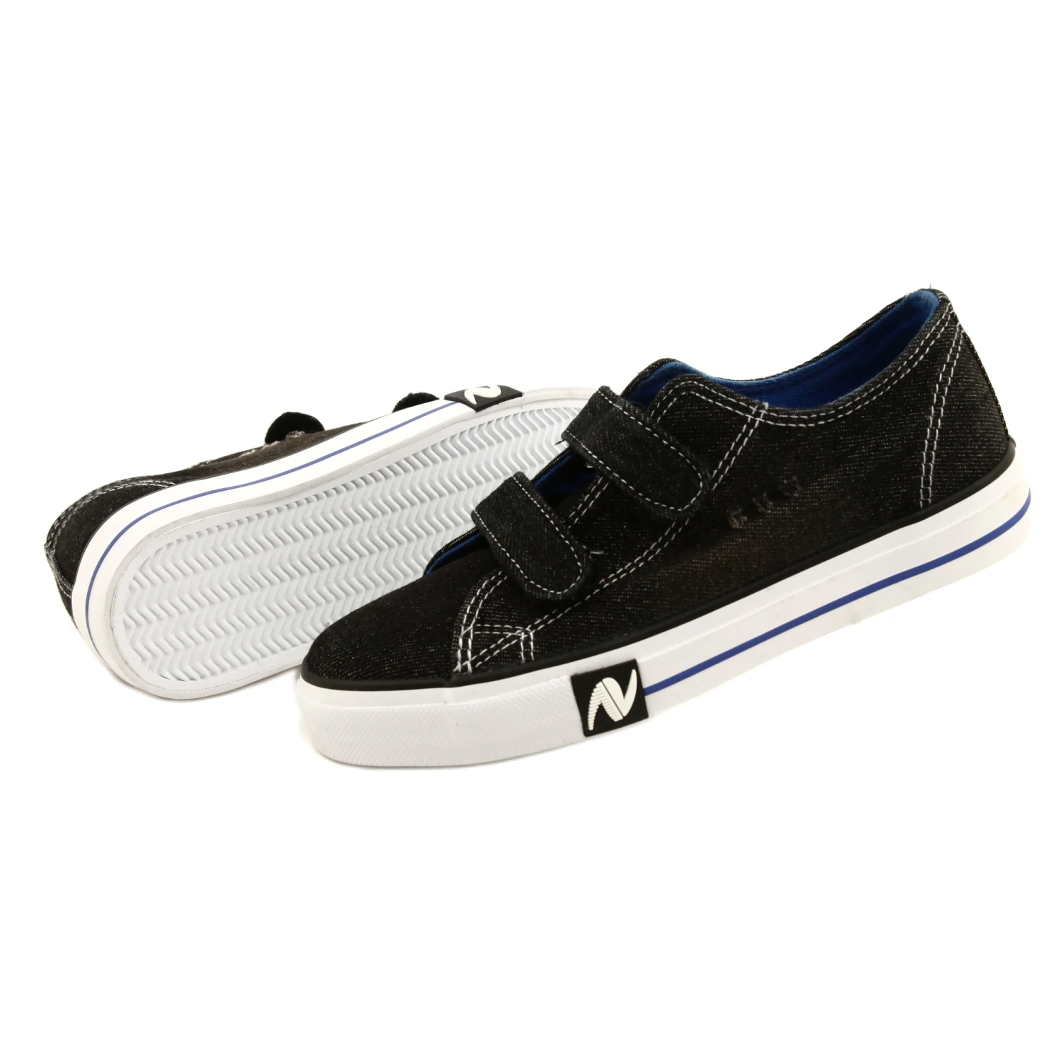 Baskets classiques Atletico Velcro dédiées aux garçons. La semelle intérieure et le matériau extérieur sont en matériau textile de haute qualité. jean noir. Les baskets ont un contrefort de talon rigide, assurant ainsi la stabilisation du pied de l’enfant. La semelle flexible offre une totale liberté de mouvement. Chaussures légères et confortables. Ils sont parfaits pour la maternelle ou la cour de récréation. Attachés avec du velcro, ils ne causeront pas de problèmes aux garçons. Ils peuvent facilement les mettre et les enlever.