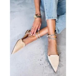 Ballerines élégantes pour femme à talon ouvert. La lanière bordée de pierres brillantes enveloppe joliment la cheville… De plus, elles ont un design soigné avec de délicats bouts pointus. Vous pouvez tomber amoureux d’eux au premier regard 🙂 Ils sont faits d’un tissu imitant le satin. Ils ont l’air tout simplement phénoménaux !