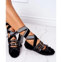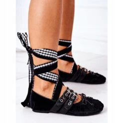 Délicates ballerines Lu Boo. Un élément intéressant sont les rubans noués autour de la cheville. Chaussures en velours. N’oubliez pas de consulter toute notre collection de ballerines ! Lorsque vous choisissez une taille, veuillez utiliser le tableau des tailles. Les ballerines ont deux types de rubans dans l’ensemble, unis et à carreaux.