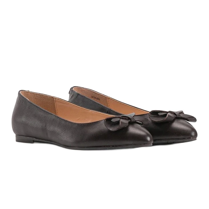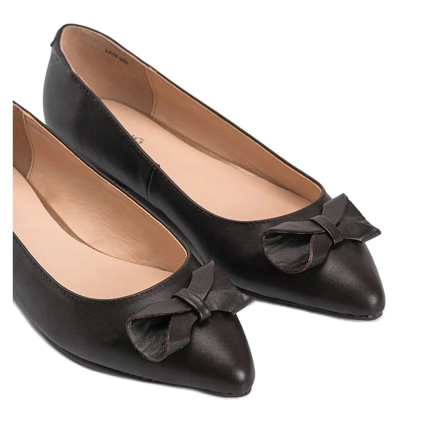 Nous vous présentons de belles ballerines Lisa en cuir. Les ballerines dans un style classique simple sont le complément parfait aux stylisations officielles et quotidiennes. Les chaussures ont un bout pointu et un nœud délicat sur la partie supérieure de la tige. Numérotation standard, veuillez suivre votre taille.
