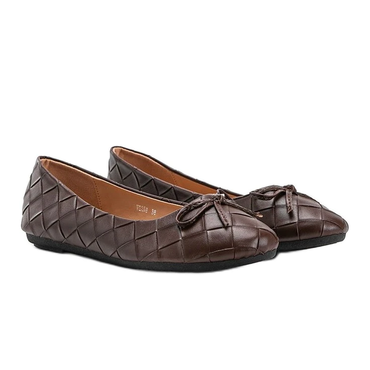 Nous vous présentons les ballerines tissées Kaiden. Un modèle classique de ballerines dans une édition légèrement différente, un nœud subtil et un motif tressé leur donnent du charme. Les ballerines seront un excellent complément aux stylisations décontractées estivales. Numérotation sous-dimensionnée, nous vous suggérons de choisir une taille plus grande.