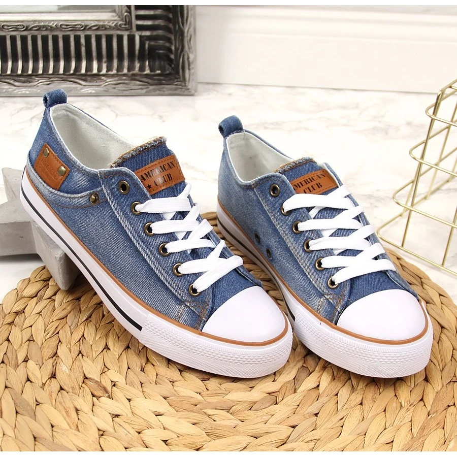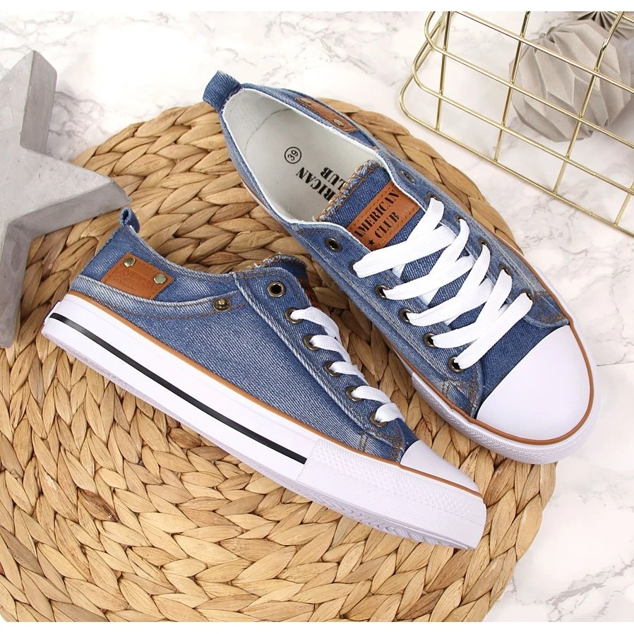 Le hit absolu de la saison ! Un motif intemporel de baskets American Club dans une belle couleur denim originale. Les baskets en matériau de haute qualité, s’adaptent à la forme du pied, ont une semelle antidérapante.
