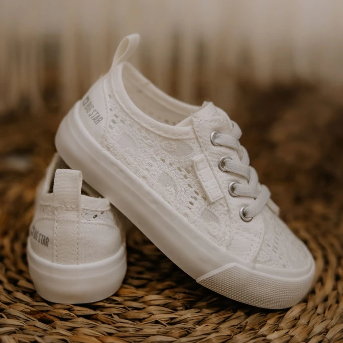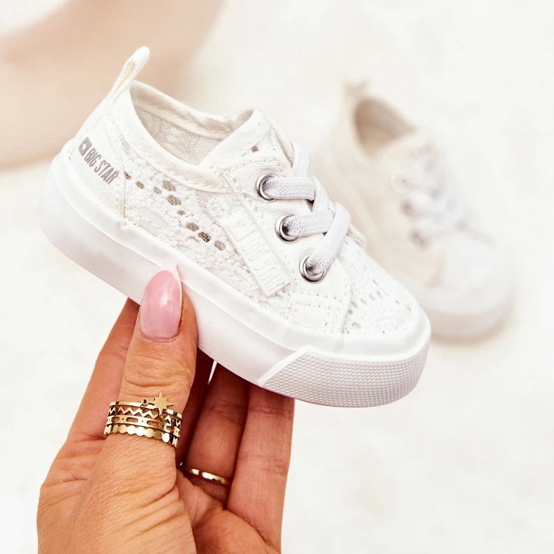 Magnifiques baskets pour enfants de la marque BIG STAR. Les baskets sont fabriquées dans une matière textile avec un motif ajouré. Ils ont une semelle antidérapante. La semelle intérieure douce assurera le confort lors du port. Les baskets sont à enfiler, ont des bandes élastiques imitant les lacets. Sur le côté se trouve le logo Big Star. Assurez-vous de consulter notre collection complète de chaussures BIG STAR! Les tailles 17 à 21 ont 3 œillets pour les lacets, les tailles 22 à 27 ont 4 œillets et les tailles 28 à 35 ont 5 œillets. Lors du choix d’une taille, veuillez utiliser le tableau des tailles.