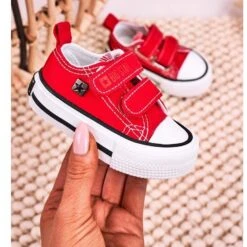 Belles baskets pour enfants couleur rouge intense ! Pour les filles et les garçons. Chaussures velcro présentées, fabriquées dans un tissu de bonne qualité résistant aux facteurs externes. Les chaussures ont un contrefort de talon rigide, une doublure intérieure en matériau et une semelle blanche et épaissie est une finition parfaite pour la chaussure, créant un design cool. Parfaites pour la marche quotidienne, elles conviendront à de nombreux styles. Dans des chaussures aussi uniques, chaque enfant sera une star.