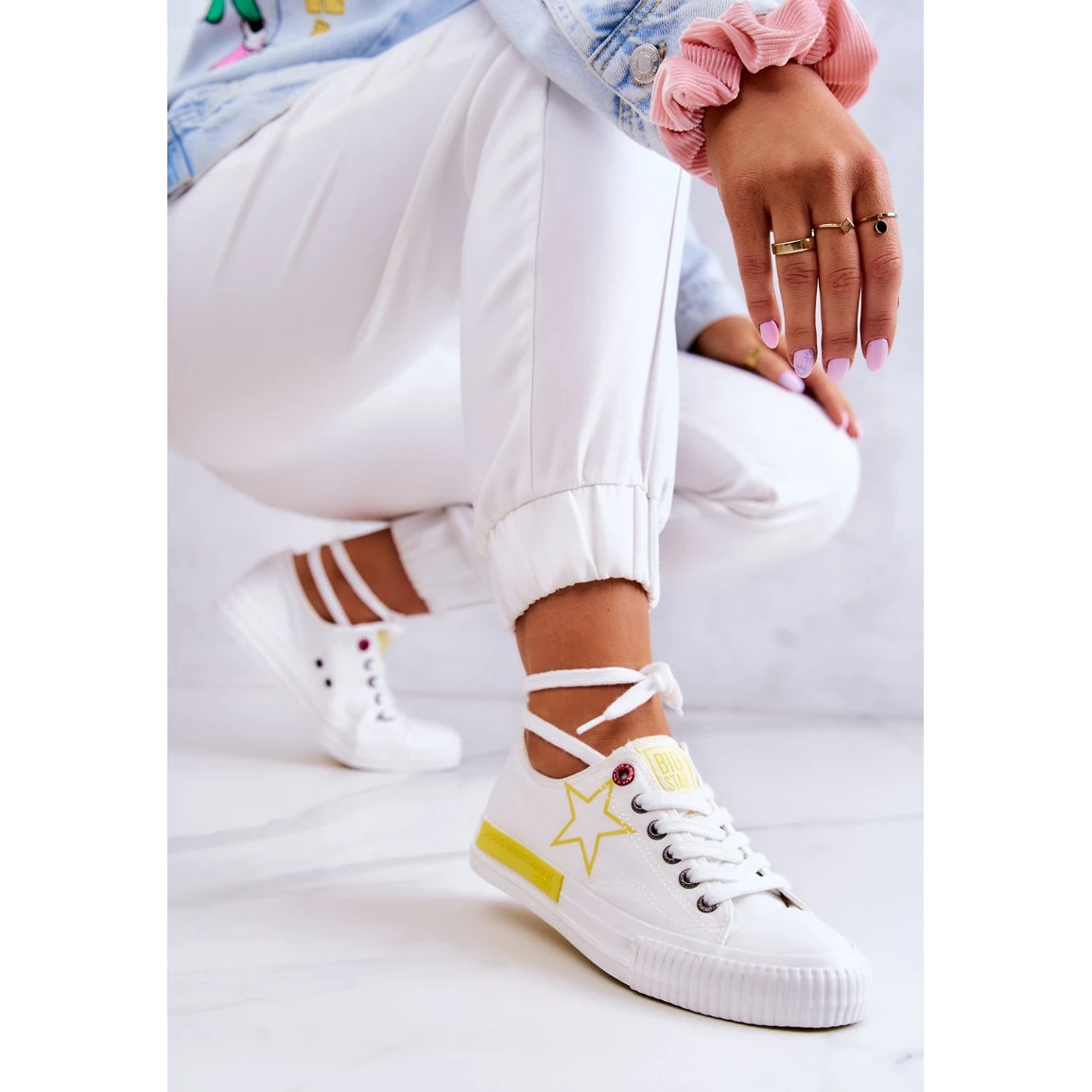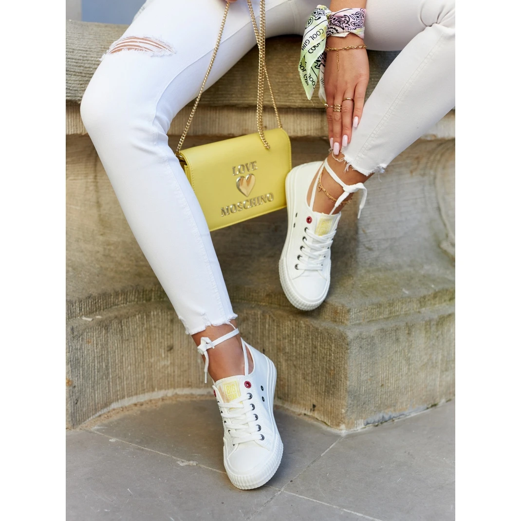 Baskets classiques pour femmes parfaites pour de nombreux styles ! Ils ont une reliure classique. Le modèle est fait d’un matériau textile lisse, glissant et facile à nettoyer. La pointe est renforcée avec un matériau en caoutchouc. La semelle est souple et antidérapante. La semelle intérieure souple garantit le confort lors de longues promenades ou de randonnées. Lorsque vous choisissez une taille, veuillez utiliser le tableau des tailles.