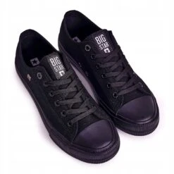 Les baskets sont des chaussures confortables et confortables, irremplaçables au printemps et en été, pour un style quotidien dans un style informel. Les textes noirs sur les baskets à lacets de la marque Big Star sont une excellente proposition pour les hommes, y compris comme chaussures de sport de tous les jours. Les chaussures ont été faites avec une attention à chaque détail. Ils ont une semelle en caoutchouc plus haute qui offre une excellente traction sur de nombreuses surfaces différentes. Ces chaussures confortables sont un véritable must-have dans la garde-robe de tout homme moderne et élégant.