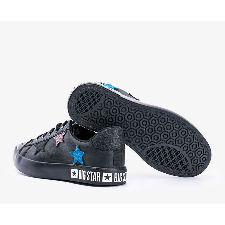 Baskets basses pour enfants de BIG STAR. Les chaussures élégantes sont décorées avec de nombreux accessoires. Le motif principal des chaussures sont des étoiles colorées et un bout brillant. Les chaussures sont lacées et ont une semelle épaisse qui est confortable à utiliser. Choisissez les baskets BIG STAR de #KeeShoes !