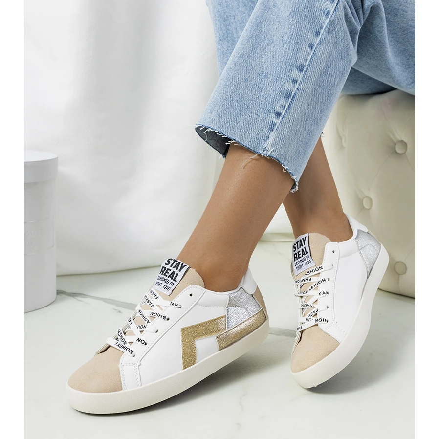 Les baskets Amaal sont le modèle parfait pour les femmes qui aiment les paillettes 😉 La tige est en daim de haute qualité et en cuir écologique recouvert de brocart magnifiquement scintillant. Les lacets ornés d’inscriptions sont un accent intéressant. Sous-numérotation, nous suggérons de choisir une taille plus grande.