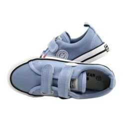 De charmantes baskets bleues délicates avec une semelle blanche, dans une belle teinte, est une proposition qui plaira sûrement à toutes les filles. De telles chaussures ont fière allure avec des pantalons et des robes, ce sont donc des chaussures très polyvalentes idéales pour un usage quotidien. Attachés avec du velcro, ils sont faciles à mettre et à enlever – pas besoin de s’embêter à attacher les lacets.