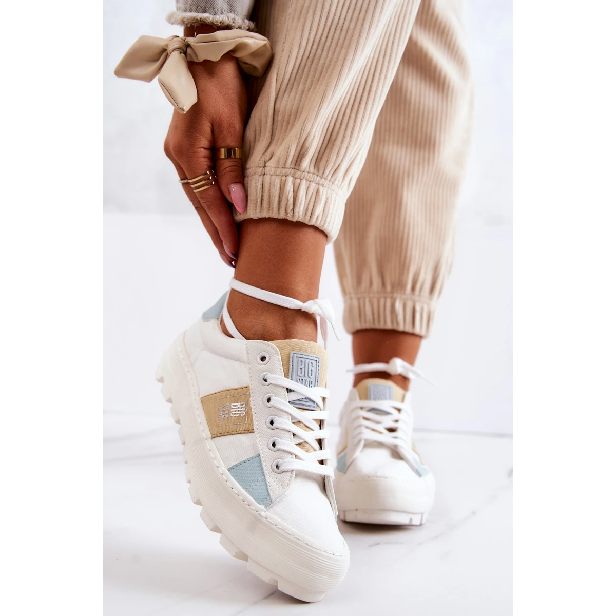 Un magnifique modèle de sneakers de la marque Big Star ! Fait de tissu, morceaux décoratifs cousus de tissus d’une couleur différente. Ils ont une plate-forme massive et antidérapante qui soulèvera doucement votre silhouette et en même temps assurera la stabilité sur un sol inégal. Baskets nouées de façon classique. Un excellent modèle pour de nombreux styles! Lorsque vous choisissez une taille, veuillez utiliser le tableau des tailles.
