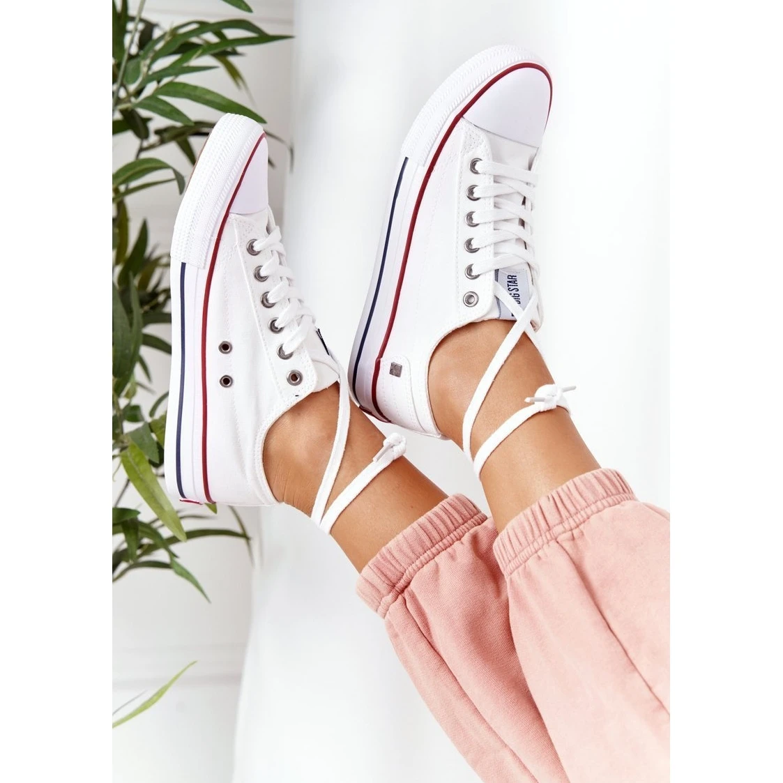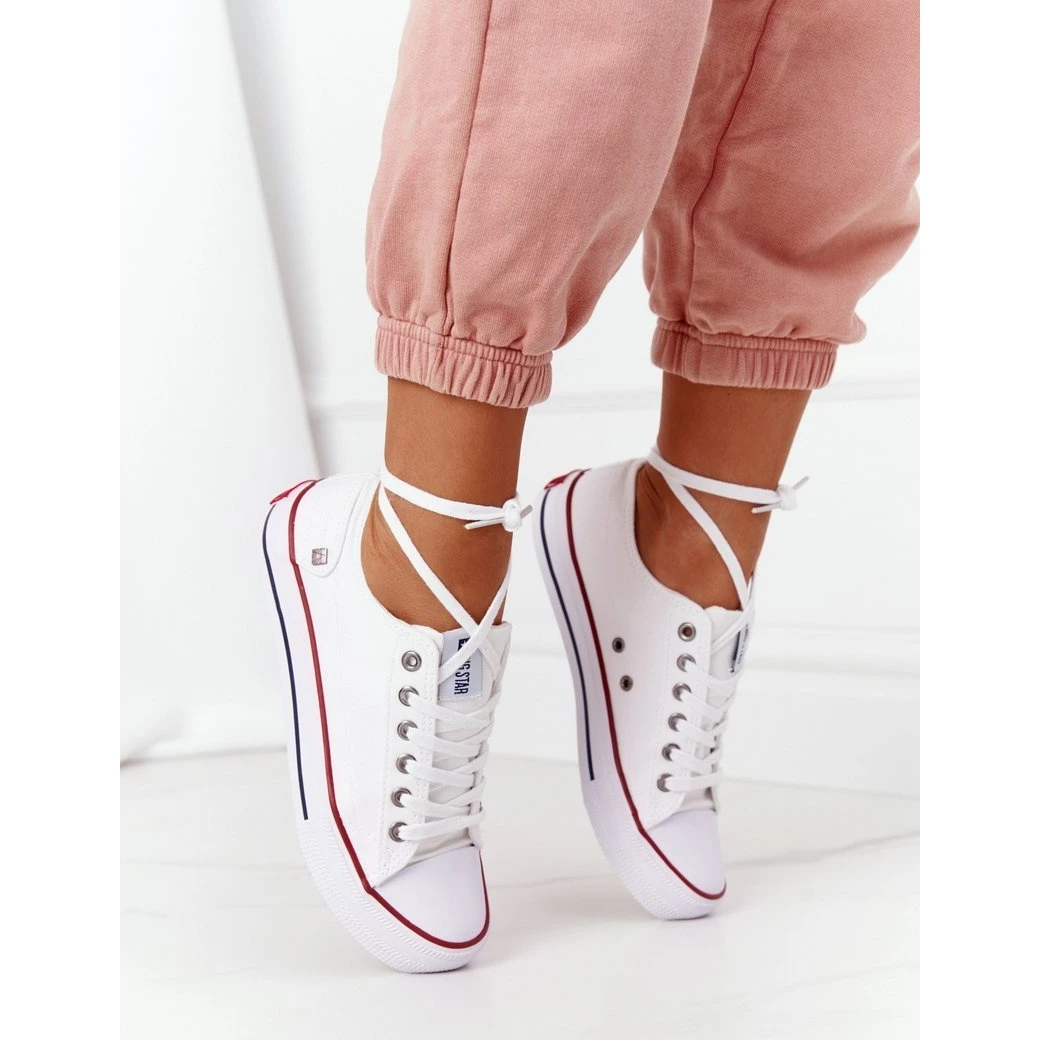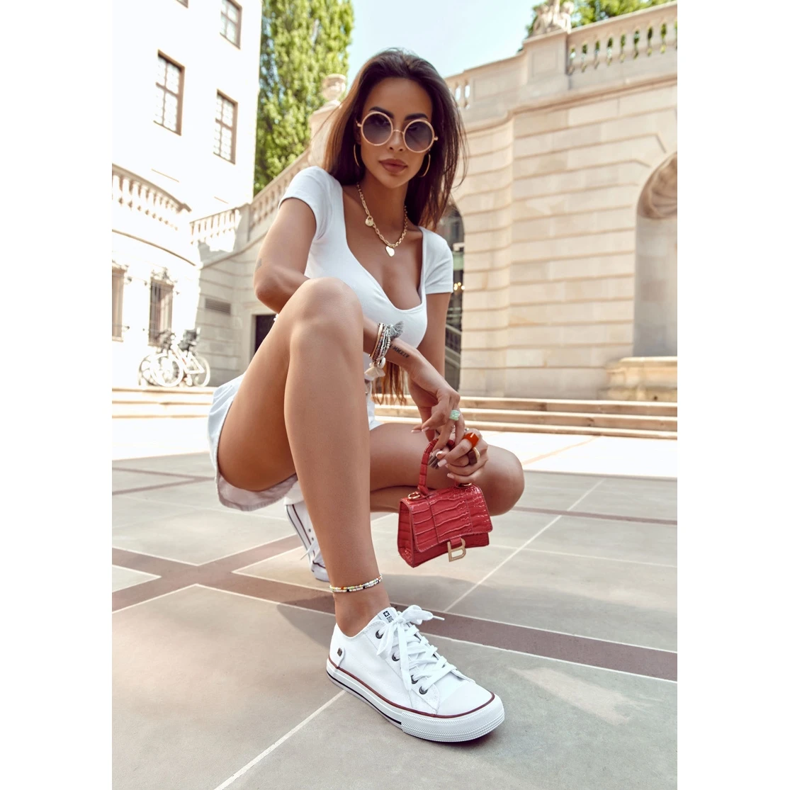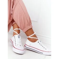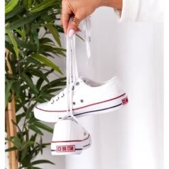 Les baskets blanches à lacets pour femmes à la forme traditionnelle tout droit sortie des années 1970 sont un modèle de chaussure typique et universel. Il fonctionnera aussi bien lors des sorties en ville que lors des activités sportives quotidiennes.