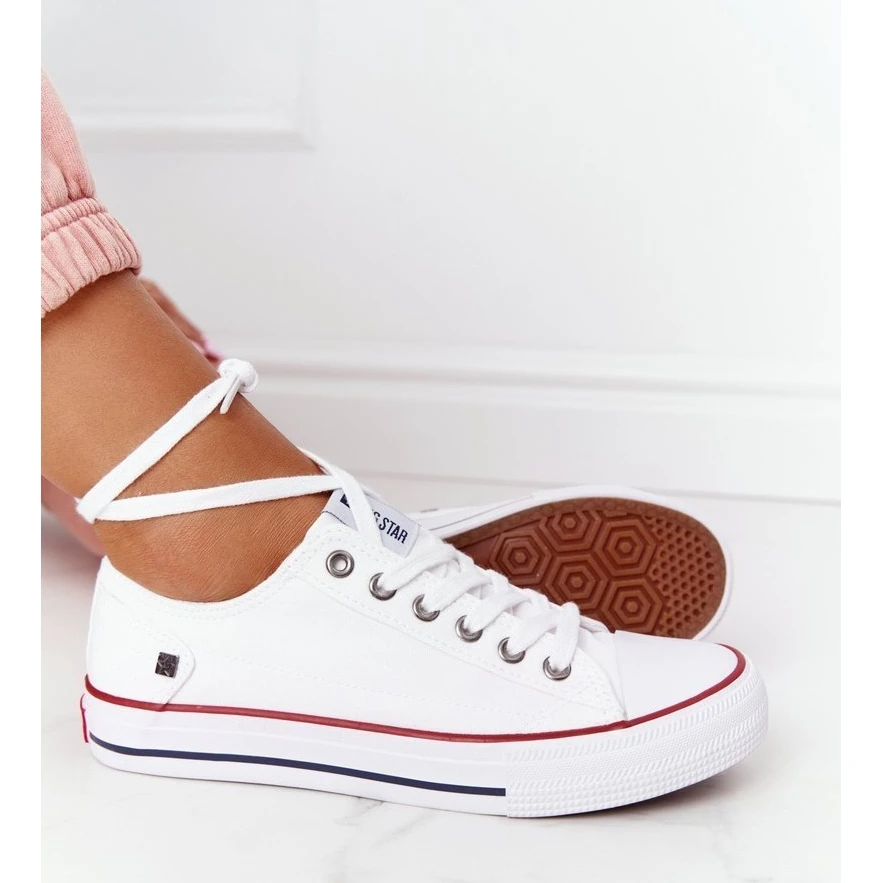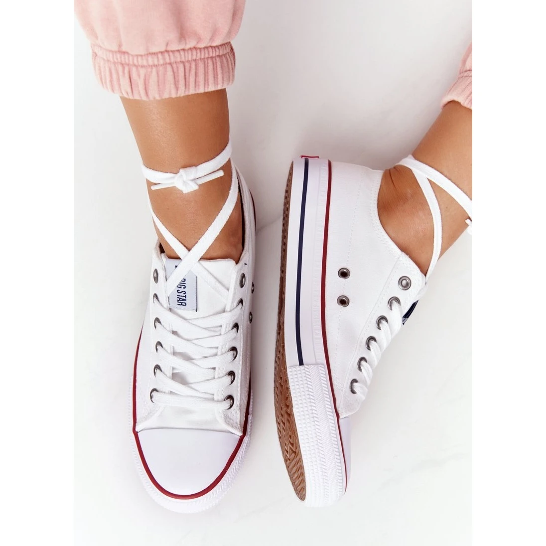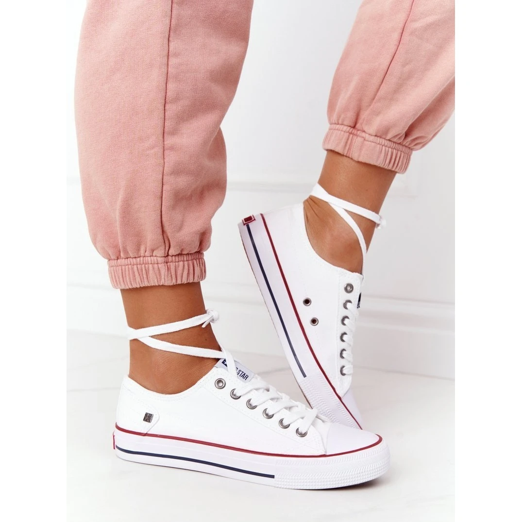 Les baskets blanches à lacets pour femmes à la forme traditionnelle tout droit sortie des années 1970 sont un modèle de chaussure typique et universel. Il fonctionnera aussi bien lors des sorties en ville que lors des activités sportives quotidiennes.
