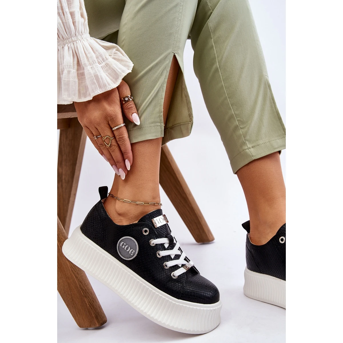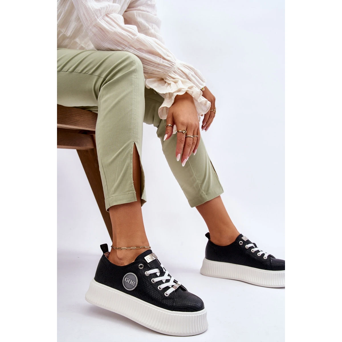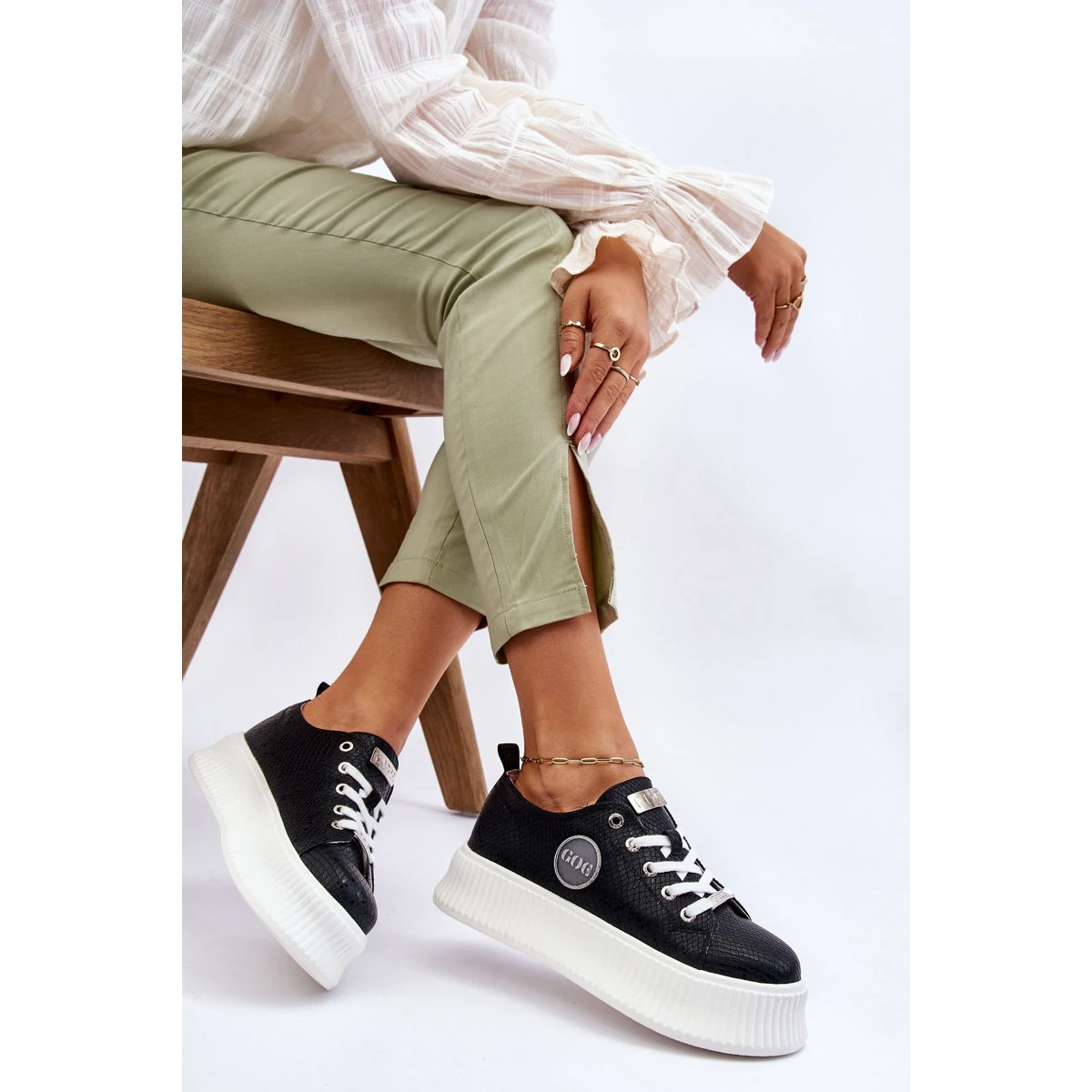 Superbes baskets pour femmes en cuir écologique de haute qualité. Cette coupe tendance s’accordera parfaitement avec les stylisations du quotidien. Le modèle à lacets classique a un emblème en caoutchouc avec le logo de la marque GOE sur le côté. La semelle intérieure douce en cuir écologique vous permettra de vous sentir à l’aise tout au long de la journée. La plate-forme massive a des rainures sur les côtés. Lorsque vous choisissez une taille, veuillez utiliser le tableau des tailles.