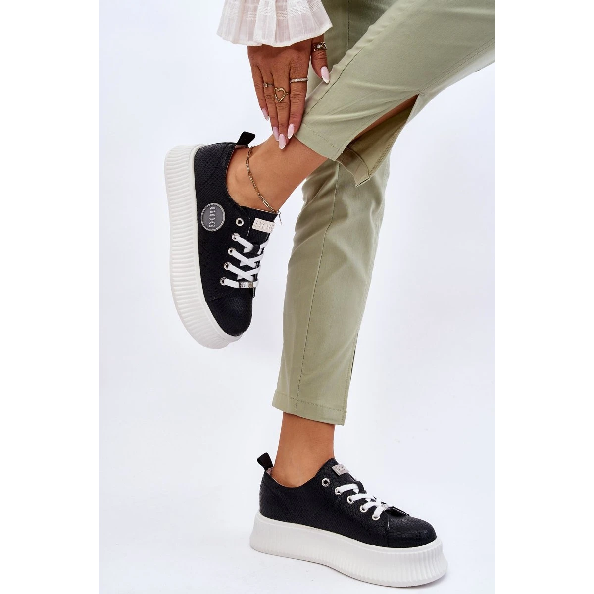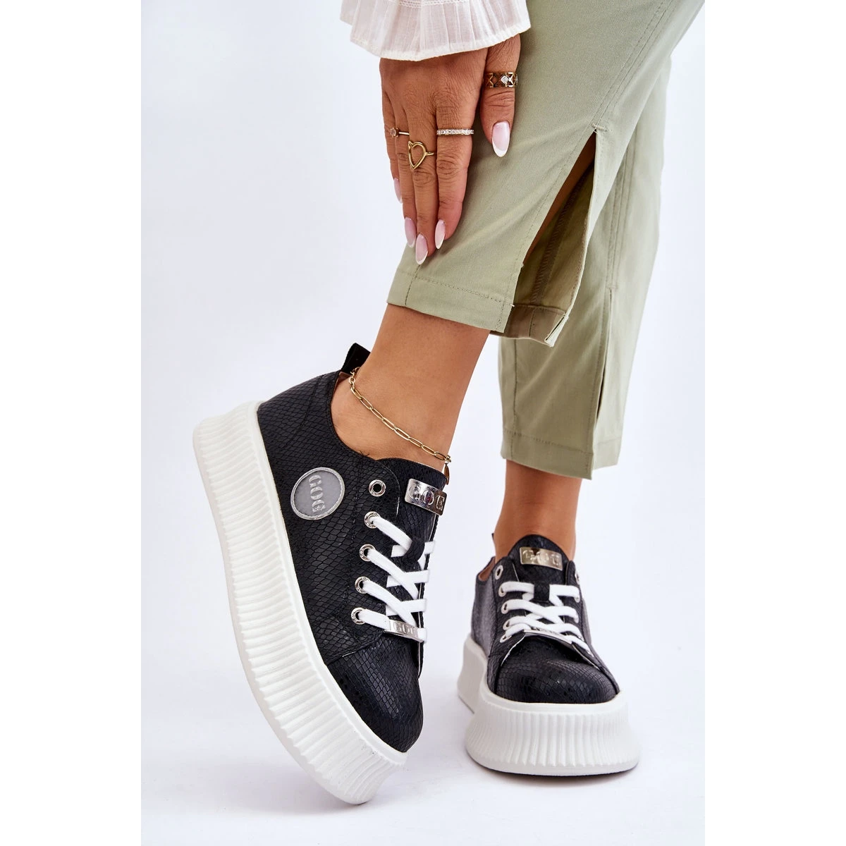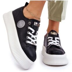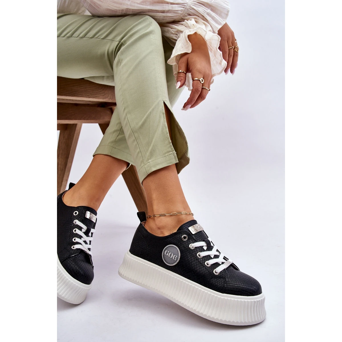 Superbes baskets pour femmes en cuir écologique de haute qualité. Cette coupe tendance s’accordera parfaitement avec les stylisations du quotidien. Le modèle à lacets classique a un emblème en caoutchouc avec le logo de la marque GOE sur le côté. La semelle intérieure douce en cuir écologique vous permettra de vous sentir à l’aise tout au long de la journée. La plate-forme massive a des rainures sur les côtés. Lorsque vous choisissez une taille, veuillez utiliser le tableau des tailles.