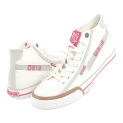L’intérieur des demi-chaussures a été doublé de matière textile pour augmenter le confort des pieds tout en les portant. La semelle souple rouge protège le pied des objets dangereux sur le terrain. À l’extérieur, les baskets ont un logo Big Star rouge en relief. Les orteils renforcés empêchent le matériau de frotter sur la partie avant de la chaussure, les lacets maintiennent le pied fermement dans la chaussure, grâce à quoi la marche ou la course est confortable et sûre.