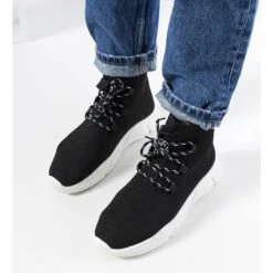 Les baskets Maryann sont un hit de cette saison en noir. Les chaussures ont une semelle épaisse à motifs. La tige est en matière souple en forme de chaussette. Les chaussures sont à enfiler, mais grâce au laçage, elles peuvent être parfaitement ajustées à la jambe. Numérotation sous-dimensionnée, nous vous suggérons de choisir une taille plus grande.