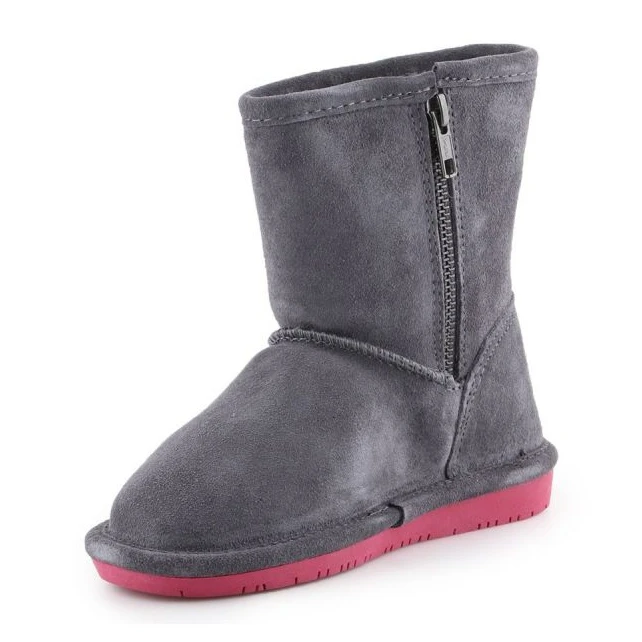 - Les bottes de neige uniques Bearpaw Emma Toddler Zipper 608TZ-903 Charcoal Pomberry sont en cuir et zippées