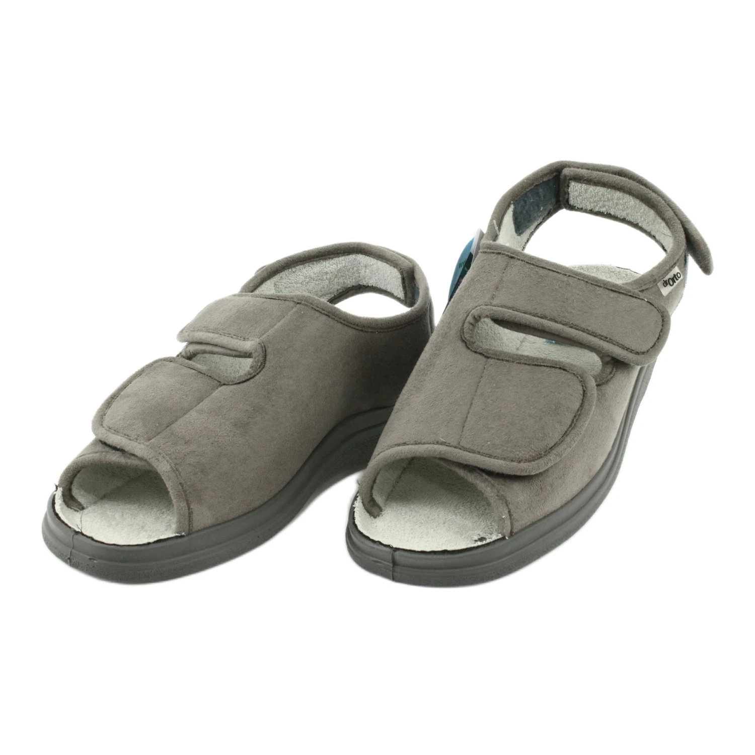 Les sandales Dr Orto offrent une liberté et un soulagement complets aux pieds sensibles et malades des personnes âgées ou souffrant de diabète. La fermeture velcro et la possibilité de déplier complètement la chaussure facilitent grandement l’enfilage. Un matériau flexible et un nombre minimum de coutures empêchent les abrasions. Les sandales peuvent être portées comme chaussures de sortie pendant les mois d’été ou comme chaussures de maison. Idéal pour les personnes blessées ou fracturées. Équipé d’une doublure spécialisée Silber aux ions d’argent actifs (Ag), conçue pour réduire la transpiration des pieds, leur offrant un confort thermique et hygiénique.