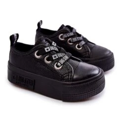 Les emblématiques baskets pour enfants Big Star sont fabriquées en cuir écologique. Ils ont un bout renforcé en caoutchouc. Le modèle se caractérise par des bandes élastiques logées imitant les lacets. La semelle avec la plate-forme est en caoutchouc, grâce à laquelle ce modèle est antidérapant. Semelle intérieure en tissu. Les baskets classiques seront certainement parfaites pour les jeux ou les promenades. Lorsque vous choisissez une taille, veuillez utiliser le tableau des tailles.