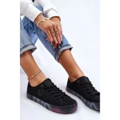 Des baskets Big Star pour femme uniques ! Avec ces chaussures, vous vous démarquerez certainement de la foule ! Ils sont en matière textile. Les baskets reposent sur une plateforme colorée et une semelle antidérapante en caoutchouc. Le contrefort de talon est légèrement renforcé avec du matériel supplémentaire. La semelle intérieure souple vous assurera un confort d’utilisation ! Lorsque vous choisissez une taille, veuillez utiliser le tableau des tailles.