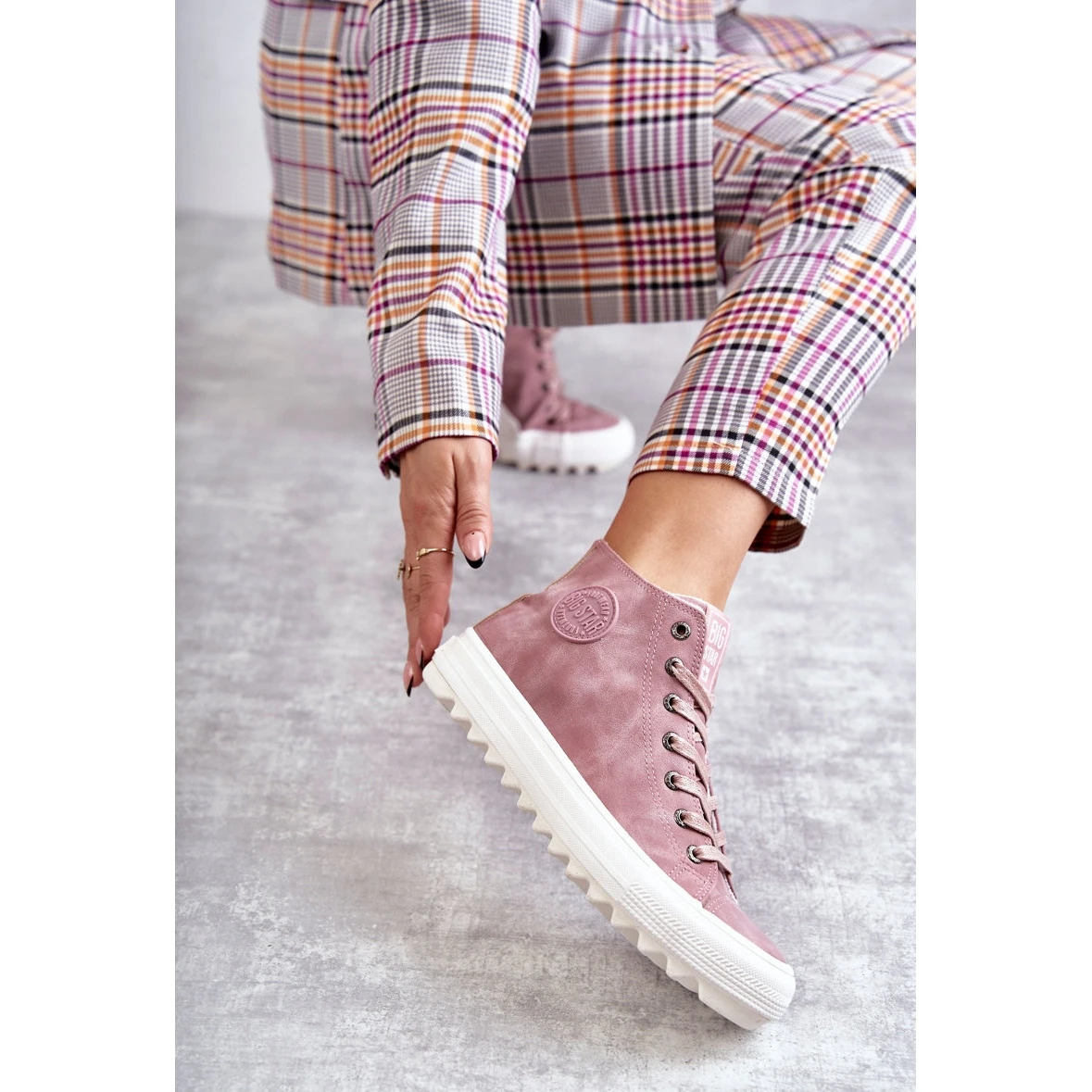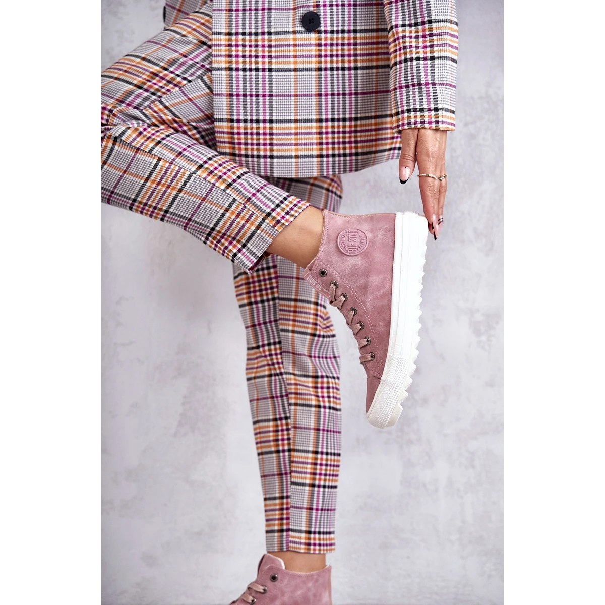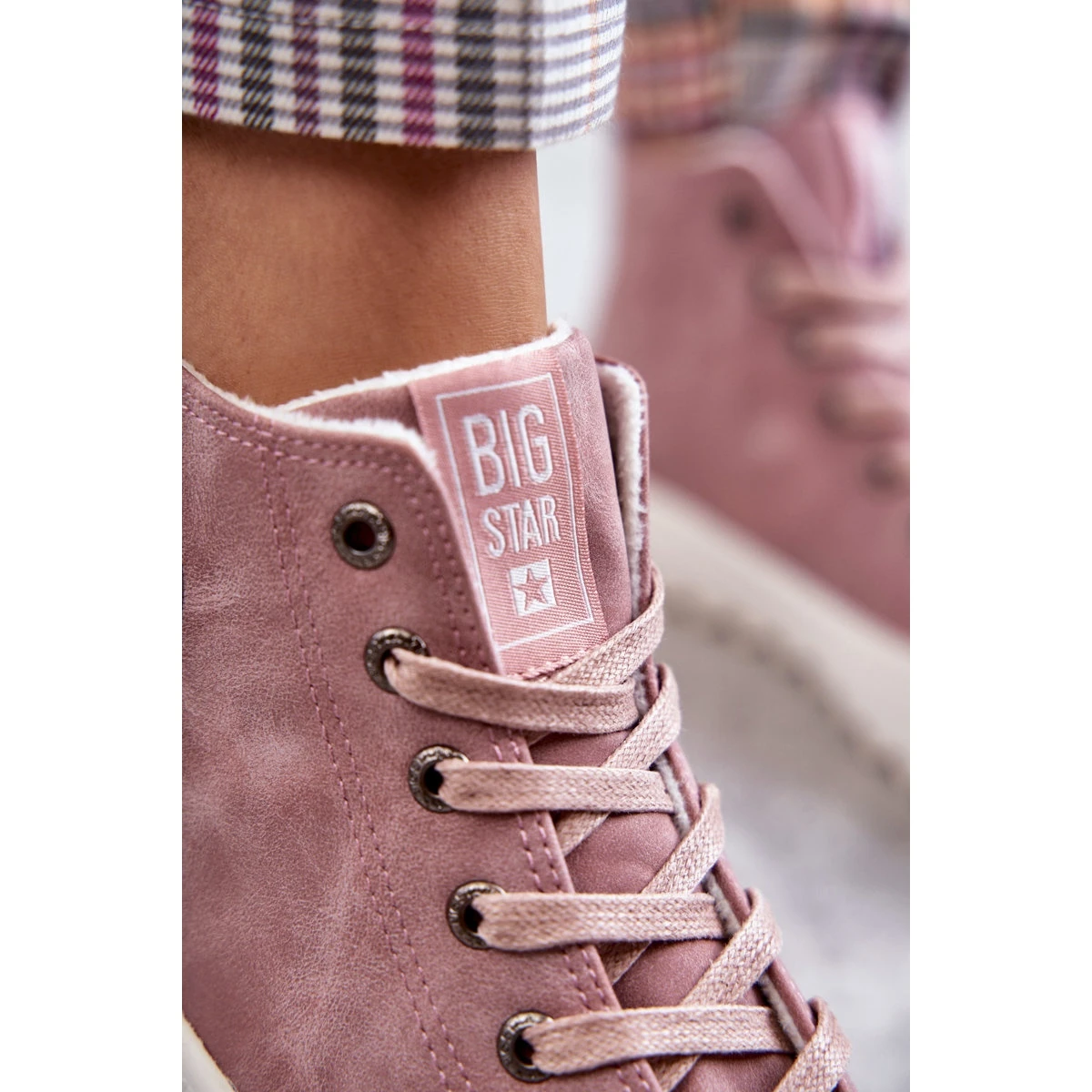 Baskets BIG STAR hautes, chaudes et intemporelles à lacets ! Confortable avec une isolation délicate sous forme de fourrure à poils courts, qui sera parfaite pour les journées plus froides. La semelle solide et antidérapante est un gage de sécurité. Le motif classique associé à un confort sans précédent est la recette parfaite pour des chaussures pratiques et originales. Maintenant dans une version sans fermeture éclair sur le cÎté ! Lorsque vous choisissez une taille, veuillez utiliser le tableau des tailles.