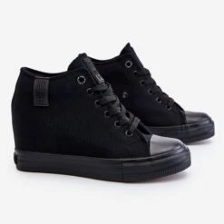 Baskets de la marque polonaise BIG STAR. Les baskets emblématiques s’adaptent à de nombreux styles. Les chaussures ont une semelle intérieure en matériau souple. De plus, il y a une cale d’une hauteur d’environ 4,5 cm à l’intérieur. La semelle solide et antidérapante est un gage de sécurité. De plus, des baskets sont embarquées sur la plateforme. Assurez-vous de consulter notre collection complète de chaussures BIG STAR. Lorsque vous choisissez une taille, veuillez utiliser le tableau des tailles.