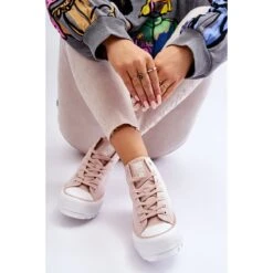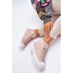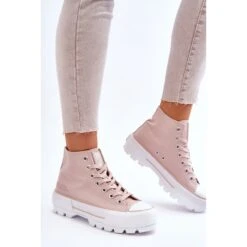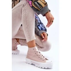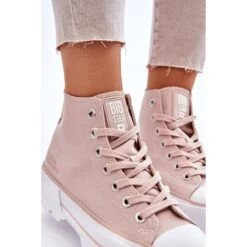Baskets montantes pour femmes à la mode de la marque Big Star ! Une semelle à profil haut et une tige en matière textile pour la cheville. Ces baskets ont également un contrefort de talon légèrement raidi. La plateforme et la semelle sont en caoutchouc. Lorsque vous choisissez une taille, veuillez utiliser le tableau des tailles.