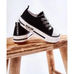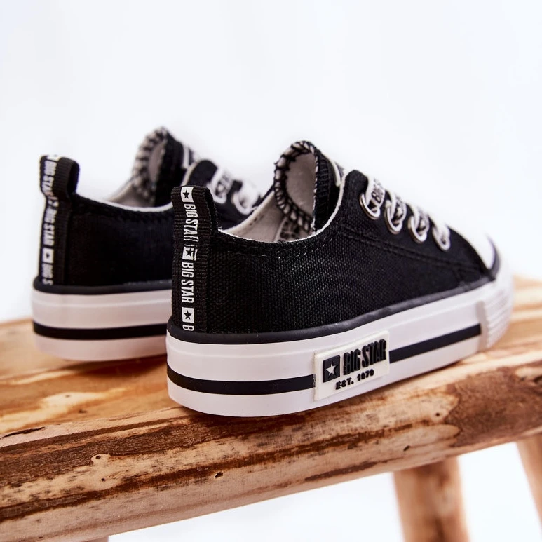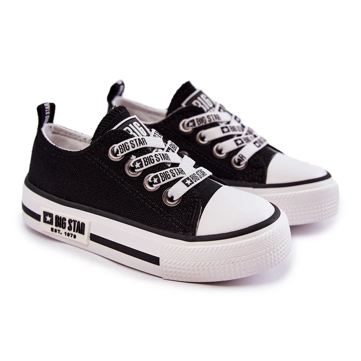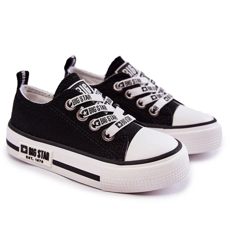 Les baskets pour enfants cultes Big Star sont fabriquées en matière textile. Ils ont un bout renforcé en caoutchouc. Le modèle se caractérise par des bandes élastiques logées imitant les lacets. La semelle avec la plate-forme est en caoutchouc, grâce à laquelle ce modèle est antidérapant. Semelle intérieure en tissu. Les baskets classiques seront certainement parfaites pour jouer ou marcher. Lorsque vous choisissez une taille, veuillez utiliser le tableau des tailles.