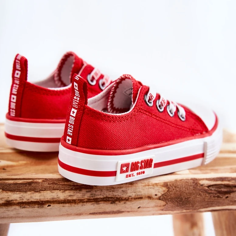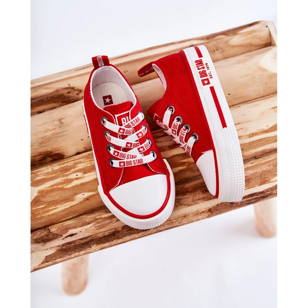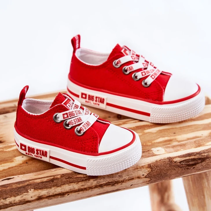 Les baskets pour enfants cultes Big Star sont fabriquées en matière textile. Ils ont un bout renforcé en caoutchouc. Le modèle se caractérise par des bandes élastiques logées imitant les lacets. La semelle avec la plate-forme est en caoutchouc, grâce à laquelle ce modèle est antidérapant. Semelle intérieure en tissu. Les baskets classiques seront certainement parfaites pour jouer ou marcher. Lorsque vous choisissez une taille, veuillez utiliser le tableau des tailles.