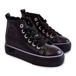Les baskets classiques pour enfants de Big Star sont en cuir écologique. Les baskets ont un bout renforcé en caoutchouc et une plateforme avec une semelle antidérapante. Le modèle a des lacets classiques et une fermeture éclair sur le côté de la tige. Logo décoratif en relief sur la tige. Un excellent modèle non seulement pour l’école, mais aussi pour les promenades et les jeux. Lorsque vous choisissez une taille, veuillez utiliser le tableau des tailles.