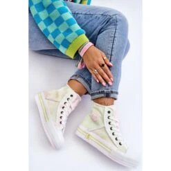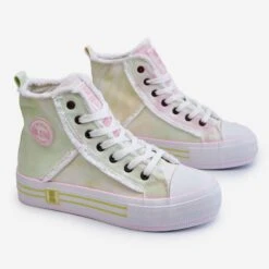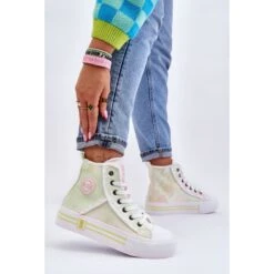 Les baskets montantes pour femme sont en matière textile. Sur le côté de la tige se trouve le logo de la marque Big Star. Ce modèle est classiquement lacé. Les chaussures étaient placées sur une plate-forme massive en caoutchouc avec une semelle antidérapante. De plus, les baskets ont un contrefort de talon renforcé et un embout renforcé de caoutchouc. Lorsque vous choisissez une taille, veuillez utiliser le tableau des tailles.