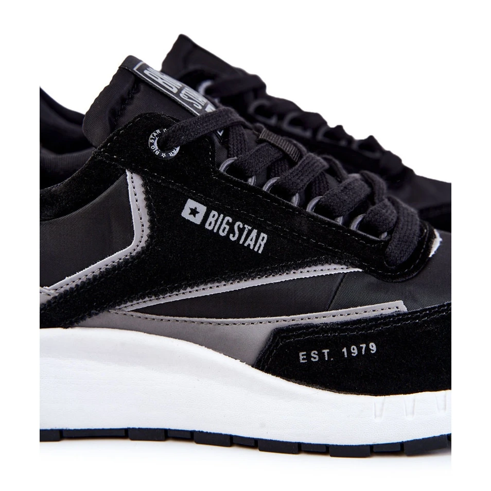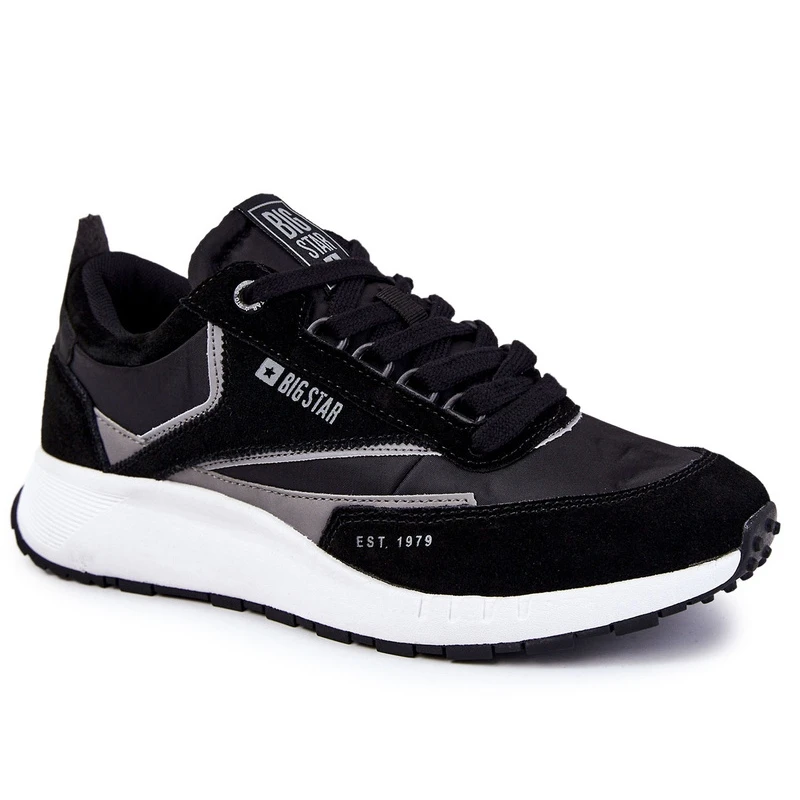 Chaussures de sport confortables et extrêmement confortables de la marque Big Star. Le modèle est composé de matière textile, de cuir écologique et d’empiècements en daim naturel. Un laçage classique permettra de bien ajuster le chaussant à la largeur de la jambe. Les chaussures de sport sont montées sur une plate-forme délicate avec une semelle antidérapante. Ce modèle devrait définitivement se trouver dans votre garde-robe ! Lorsque vous choisissez une taille, veuillez utiliser le tableau des tailles.