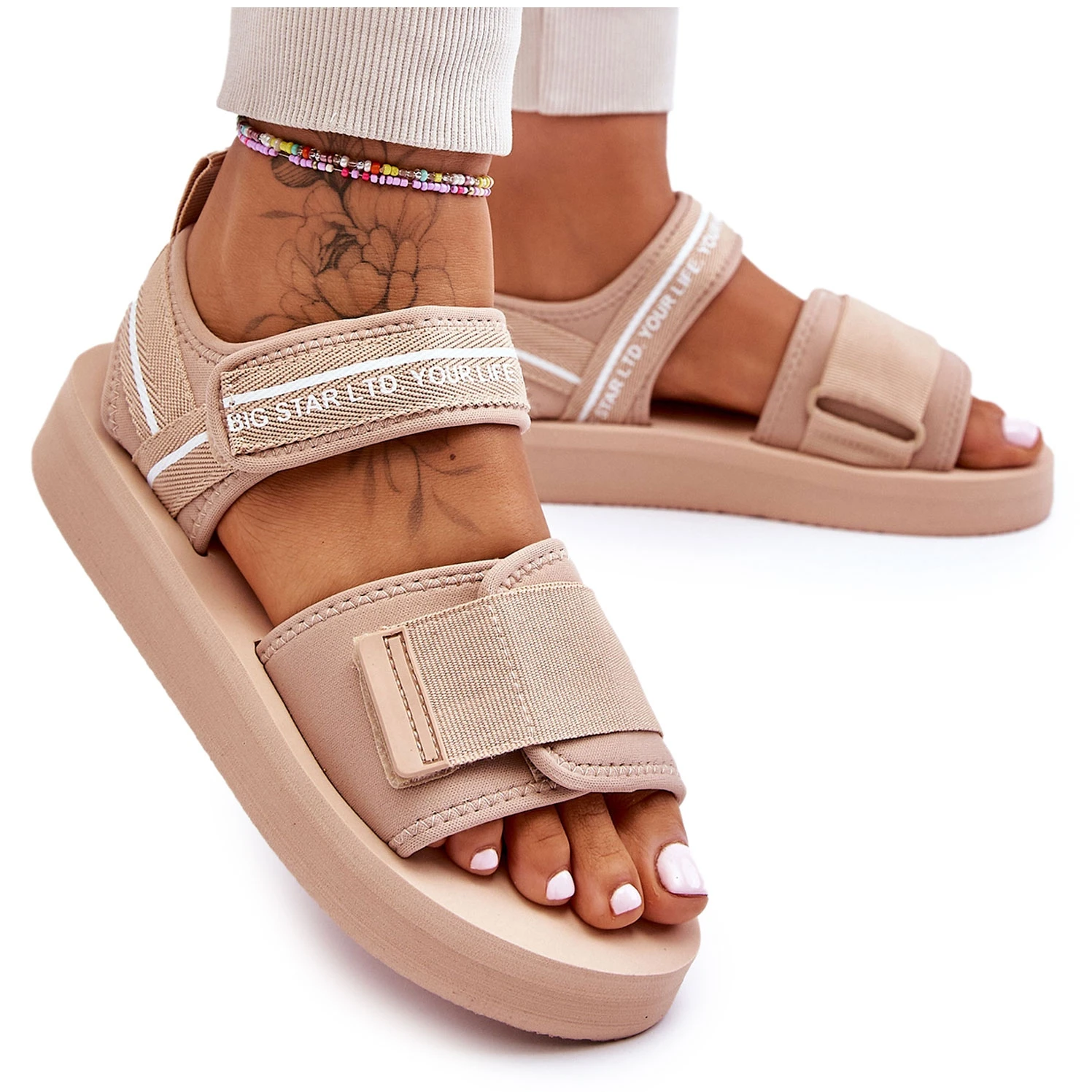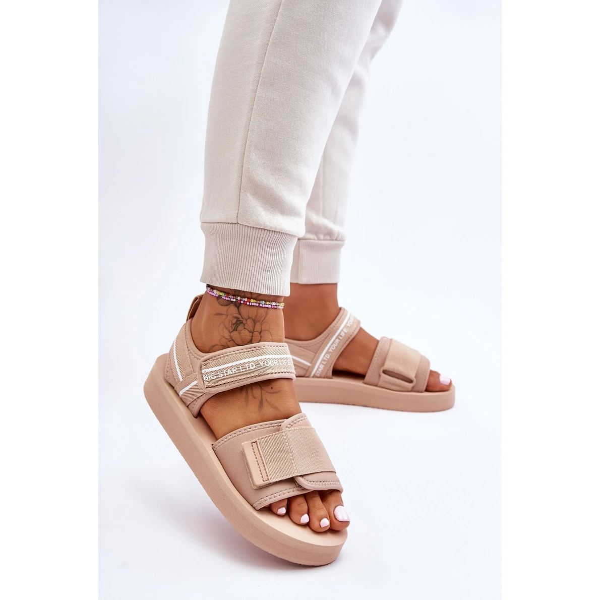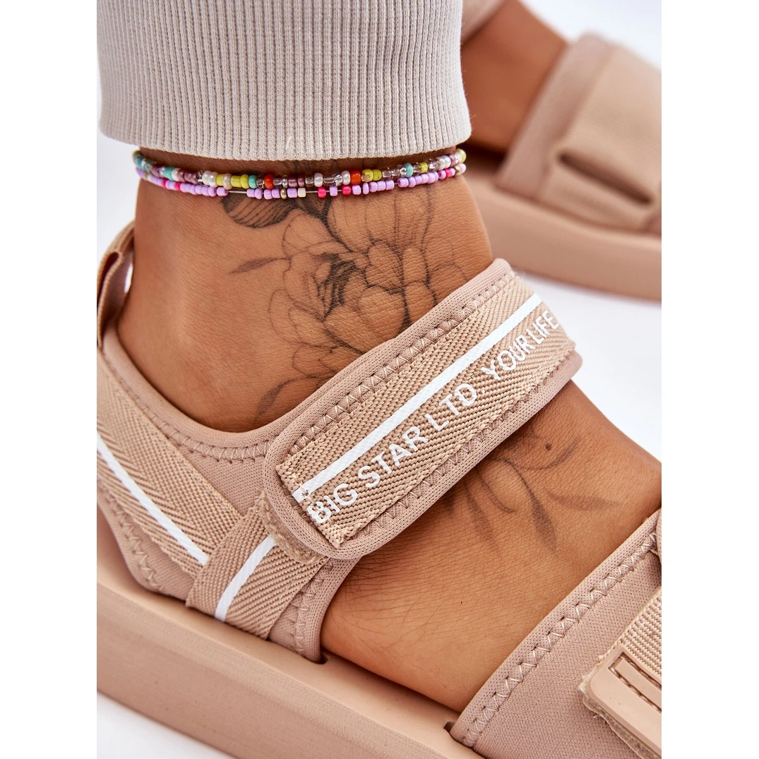 Sandales classiques pour femmes de la marque Big Star ! Ce modèle a une fermeture velcro. Les sandales étaient placées sur une plate-forme massive. Commodité et confort garantis. Les sandales du haut sont en matière textile et en plastique. Ne manquez pas de découvrir les autres modèles de sandales de la marque Big Star ! Lorsque vous choisissez une taille, veuillez utiliser le tableau des tailles.
