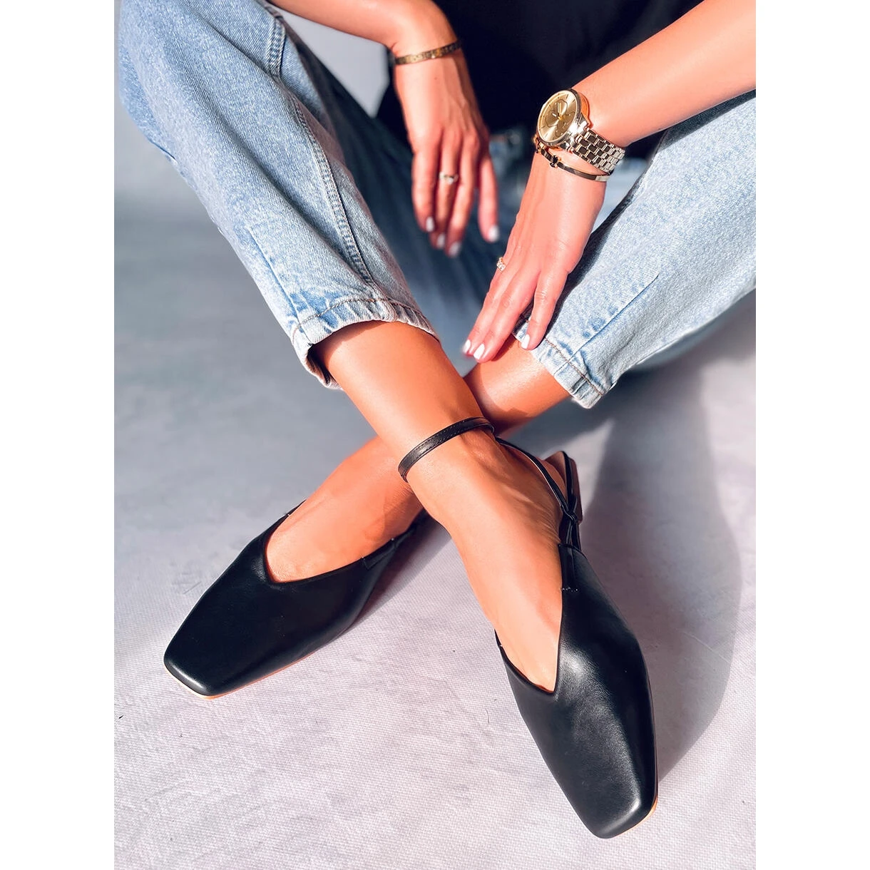 Ballerines femme à talon ouvert. Ce modèle unique a la coupe la plus en vogue avec des bouts carrés et une attache autour de la cheville. Elles décoreront à coup sûr vos tenues 🙂 Vous pouvez craquer pour ces chaussures ! Matériau extérieur – cuir écologique.