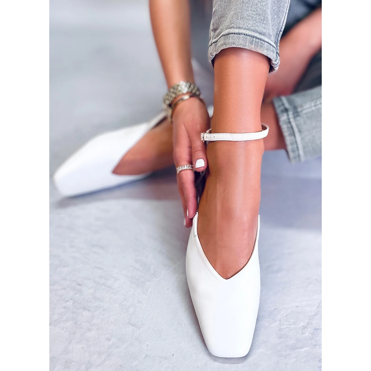 Ballerines femme à talon ouvert. Ce modèle unique a la coupe la plus en vogue avec des bouts carrés et une attache autour de la cheville. Elles décoreront à coup sûr vos tenues 🙂 Vous pouvez craquer pour ces chaussures ! Matériau extérieur – cuir écologique.