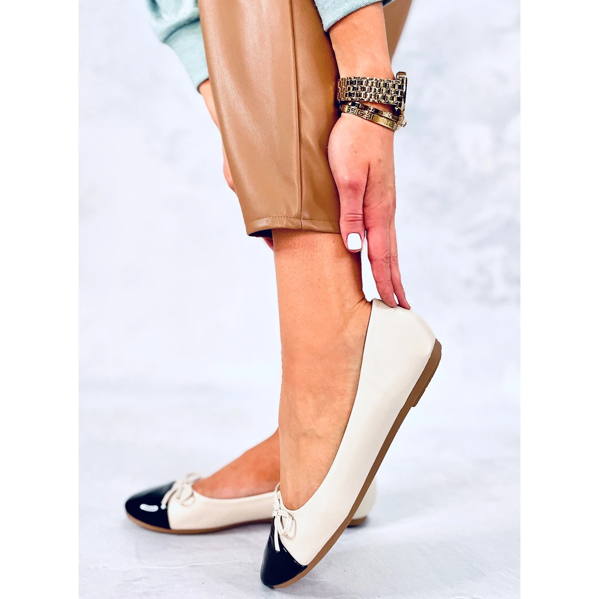 Ballerines femme à la finition grainée et bouts laqués. Les chaussures sont très délicates et romantiques grâce au joli nœud. La doublure intérieure douce vous fait tomber amoureux dès la première utilisation ! Vous devez les avoir dans votre collection ! Matériau extérieur – cuir écologique.