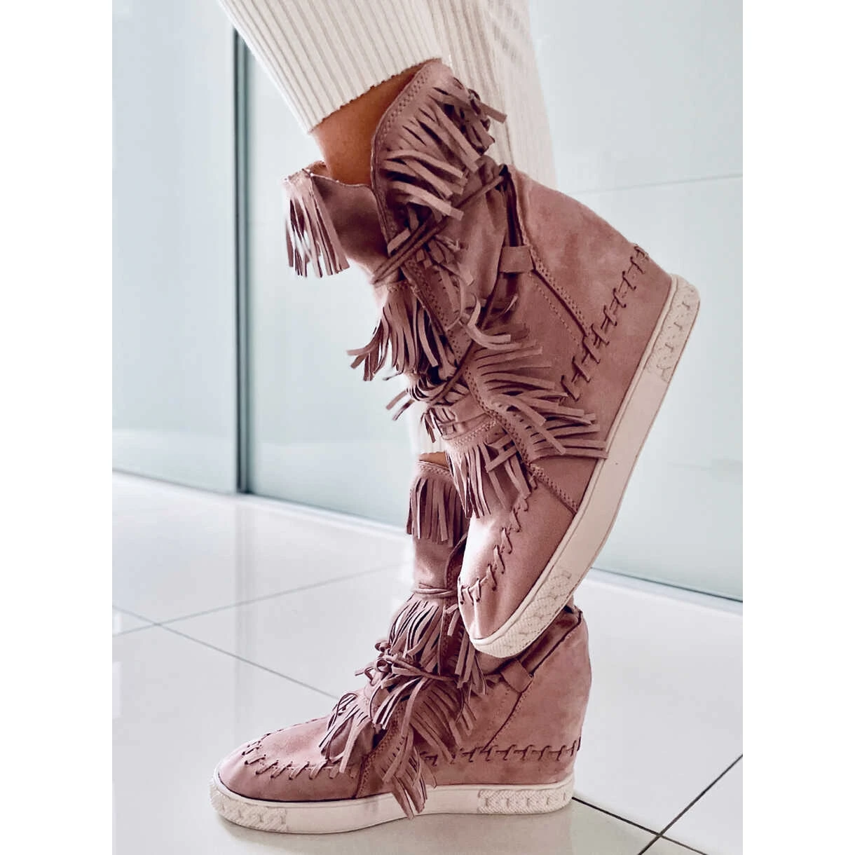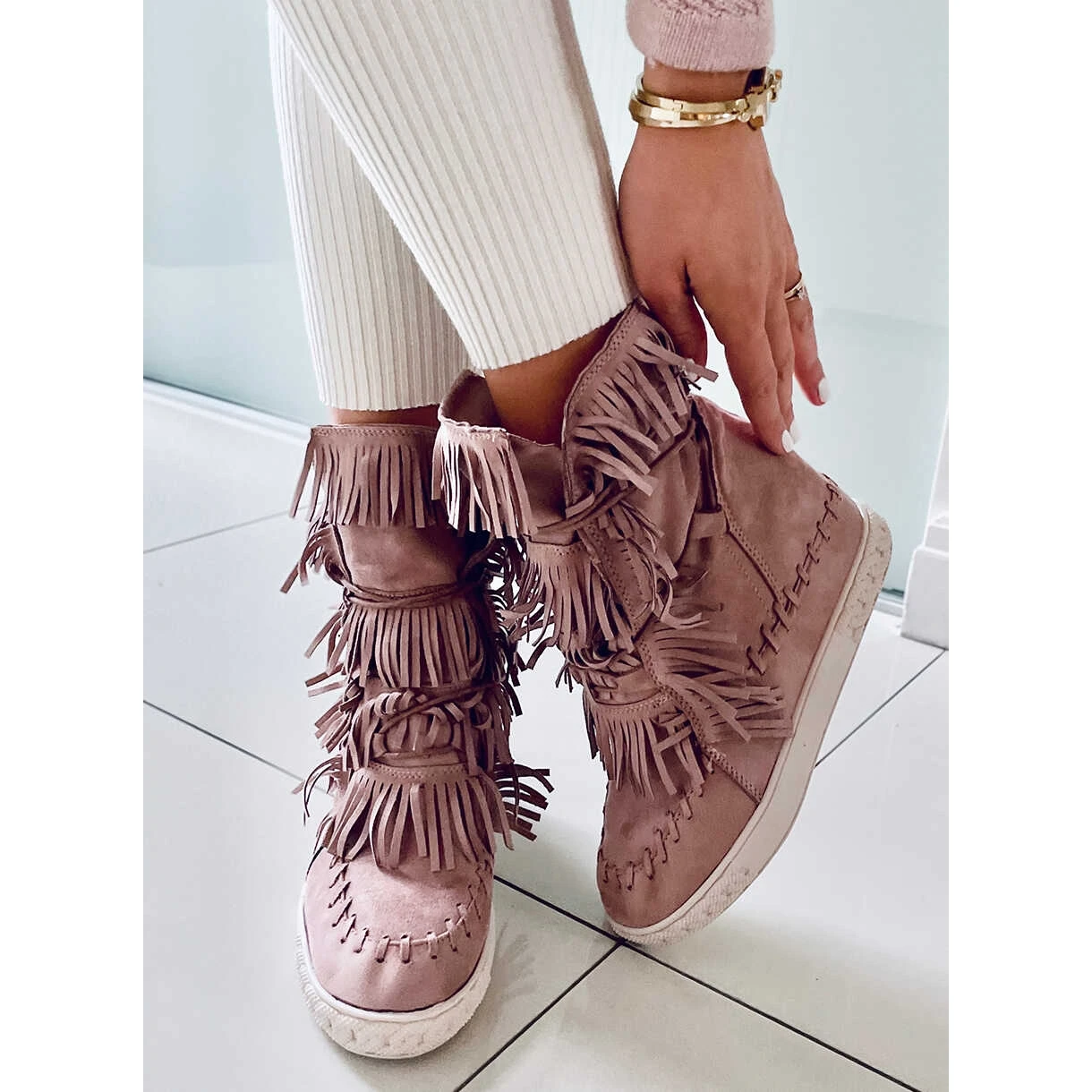 Baskets femme en daim à franges. Fabriqué en daim écologique doux. Ils ont une semelle avec des œillets de chaîne en relief. Devant à lacets. Ils sont très confortables, ils sont beaux sur la jambe!
