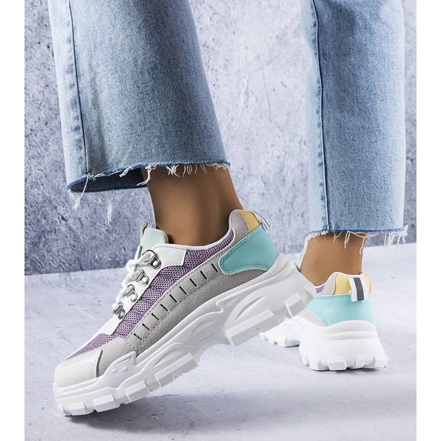 Baskets Éléonore à semelle épaisse avec rainures et relief. Haut bas avec coutures et empiècements. lacé. Fabriqué en cuir écologique combiné avec du tissu. Associez-les à un pantalon en tissu et un t-shirt uni pour un look casual chic ! Numérotation standard, veuillez suivre votre taille.