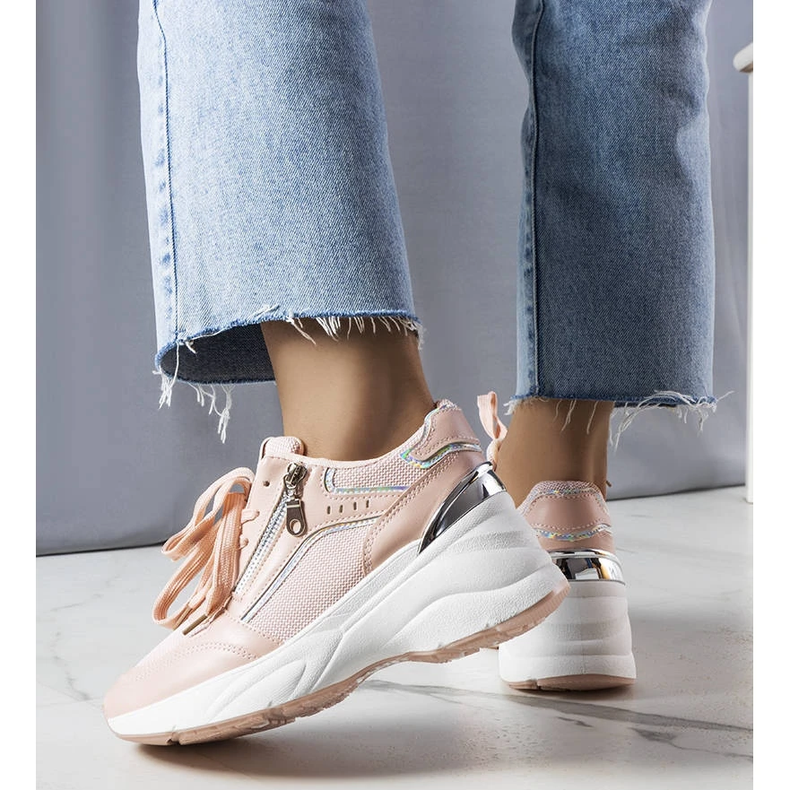 Baskets Stacey sur un petit talon compensĂ© avec un insert mĂ©tallique et une bande de roulement. Ă€ lacets, avec tige au-dessus de la cheville. FabriquĂ© dans une combinaison de cuir Ă©cologique et de matière textile. DĂ©corĂ© d’une fermeture Ă©clair. Ă€ l’intĂ©rieur, une semelle intĂ©rieure souple en Ă©co-cuir. Ils complĂ©teront parfaitement un look casual ou sportif. NumĂ©rotation standard, veuillez suivre votre taille.