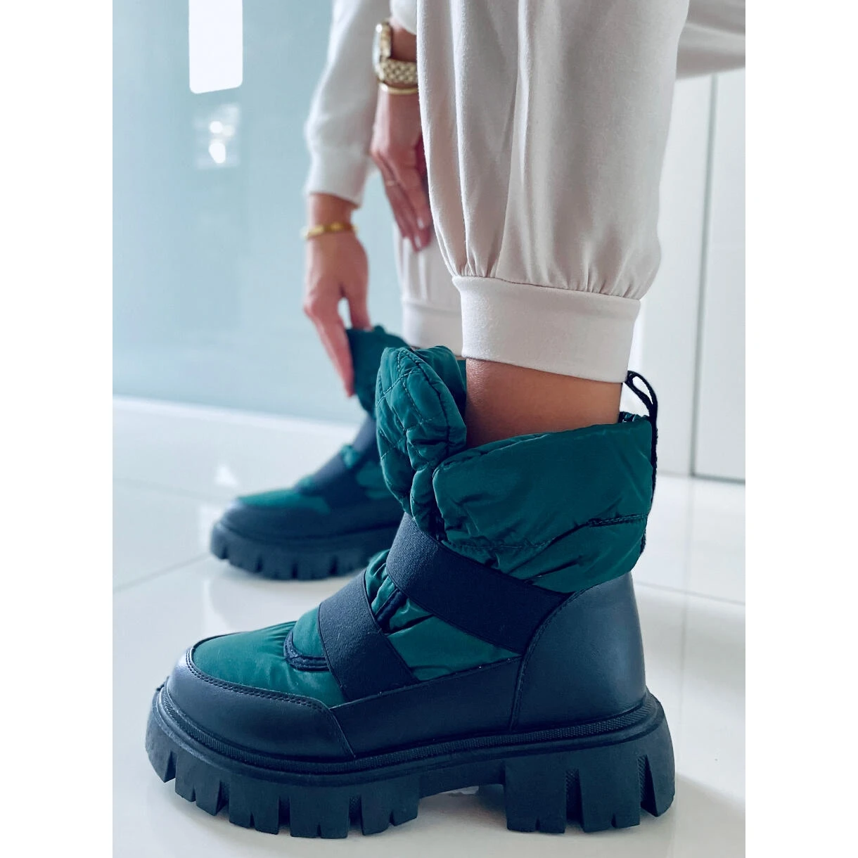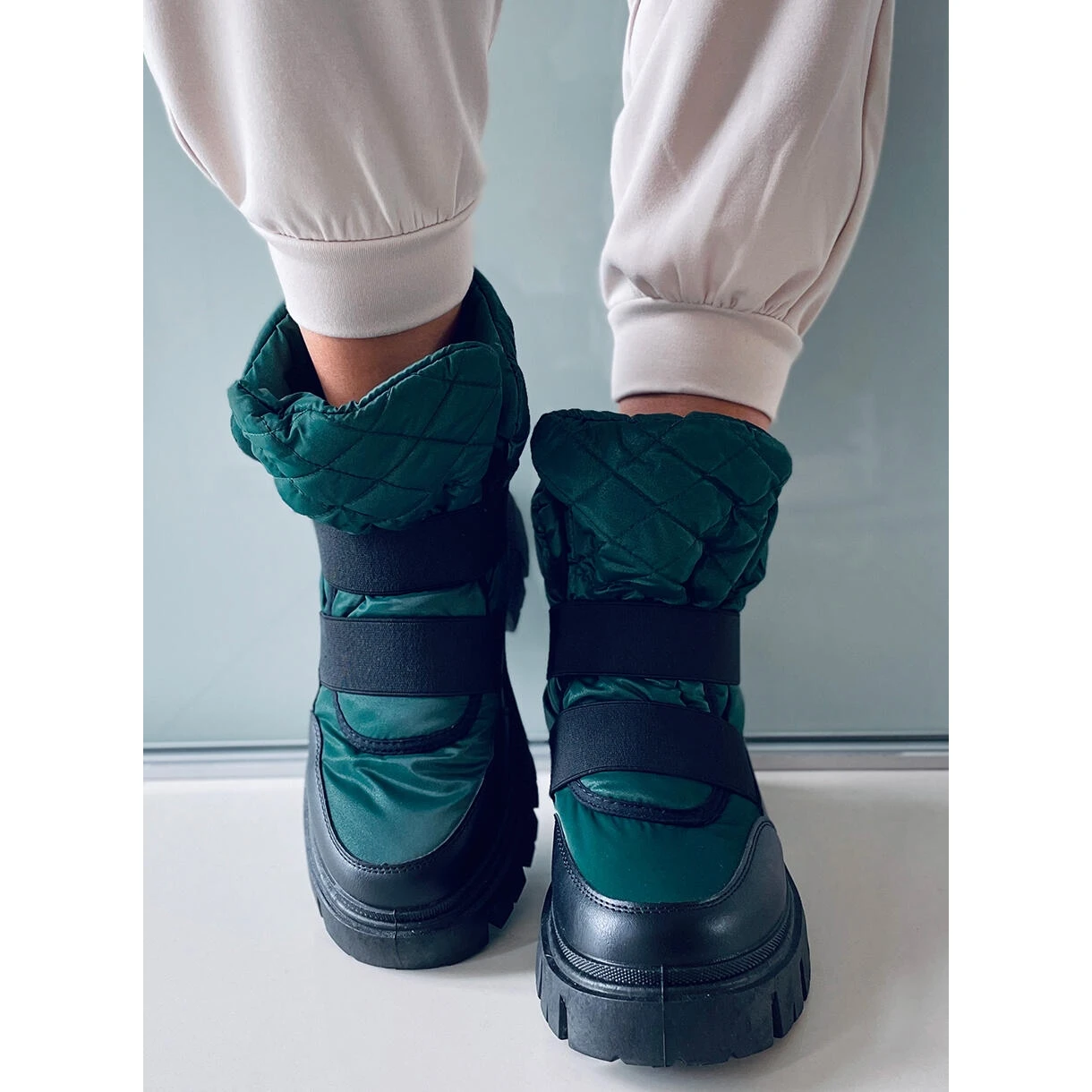 Bottes de neige pour femme à semelle haute. Obtenez ces bottes isolées avec une fourrure épaisse maintenant, et l’hiver ne vous fera pas peur ! Une semelle épaisse offrira une grande isolation du sol, ainsi qu’un confort à chaque pas. Matériau extérieur – cuir écologique + tissu en nylon.
