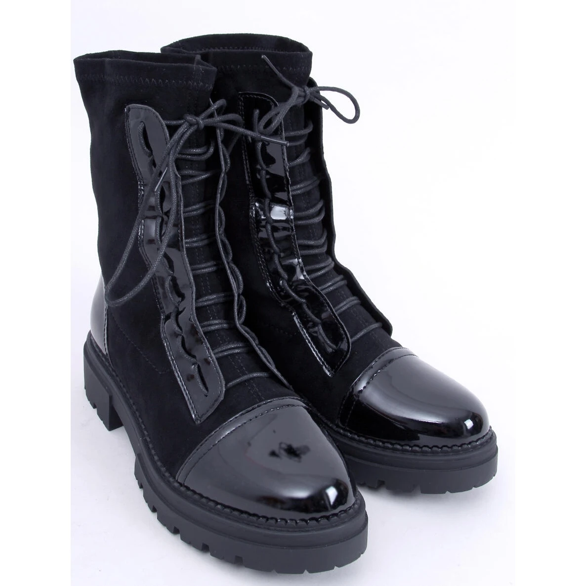 Bottes pour femmes – travailleuses sur le protecteur. La combinaison efficace du cuir écologique et du daim écologique est une solution à la mode qui répondra sûrement à votre intérêt 🙂 Le laçage décoratif souligne leur caractère unique. Ce sont les chaussures parfaites pour un usage quotidien ! Matériau extérieur – cuir écologique + daim écologique.
