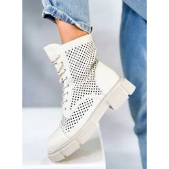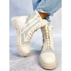 Bottes à lacets pour femmes – ouvrières. Ils ont le design le plus tendance avec une tige ajourée – parfait pour le printemps ! Vous savez probablement déjà quelles chaussures régneront désormais dans votre garde-robe ? : ) Facile à enfiler grâce à la fermeture éclair sur le côté. Matériau extérieur – cuir écologique.