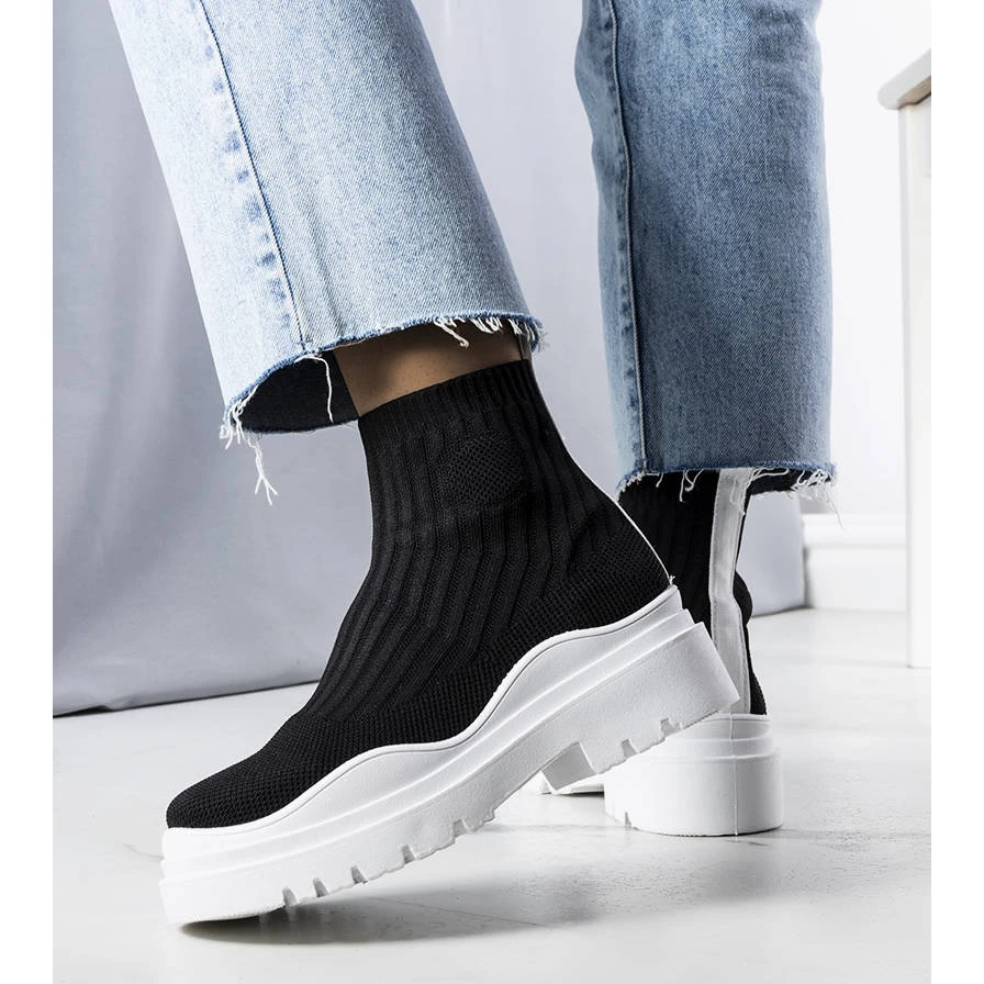 Bottes Ă enfiler Cali, en tissu Ă©lastique. La tige arrive jusqu’au milieu du mollet, ornĂ©e d’une rayure de la couleur de la semelle Ă l’arrière. MontĂ©e sur une semelle Ă©paisse et colorĂ©e avec un protecteur qui augmente l’adhĂ©rence de la chaussure au sol. Avec un nez rond. Les boots sur semelle massive sont la tendance la plus en vogue des dernières saisons ! NumĂ©rotation standard, veuillez suivre votre taille.